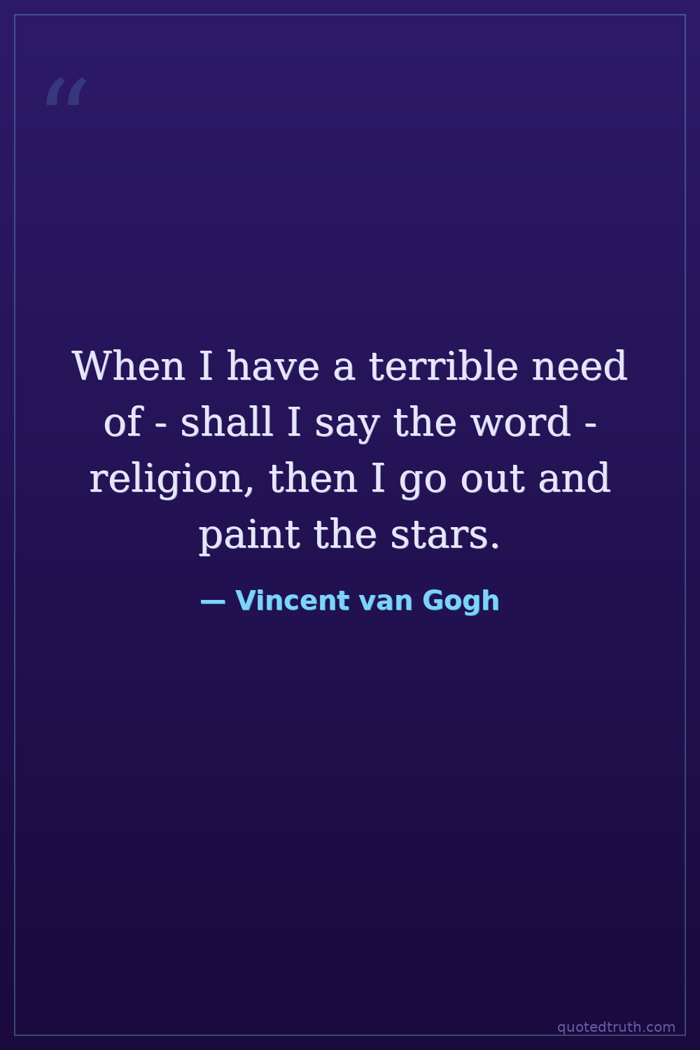 When I have a terrible need of - shall I say the word - religion, then I go out and paint the stars.