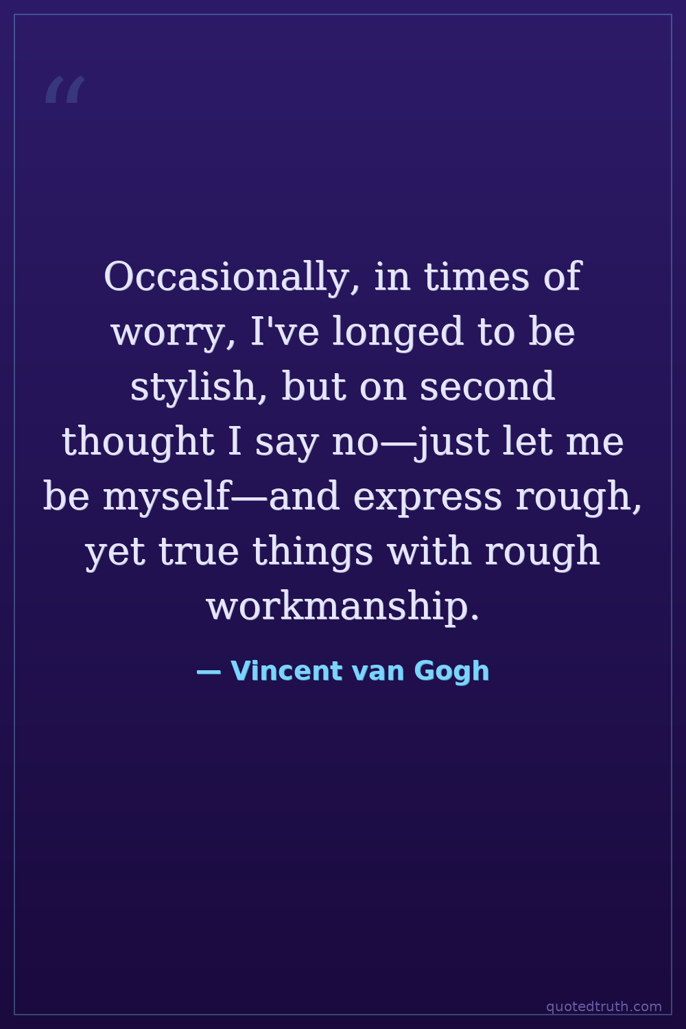 Occasionally, in times of worry, I've longed to be stylish, but on second thought I say no—just let me be myself—and express rough, yet true things with rough workmanship.