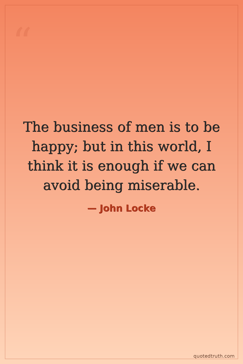 The business of men is to be happy; but in this world, I think it is enough if we can avoid being miserable.