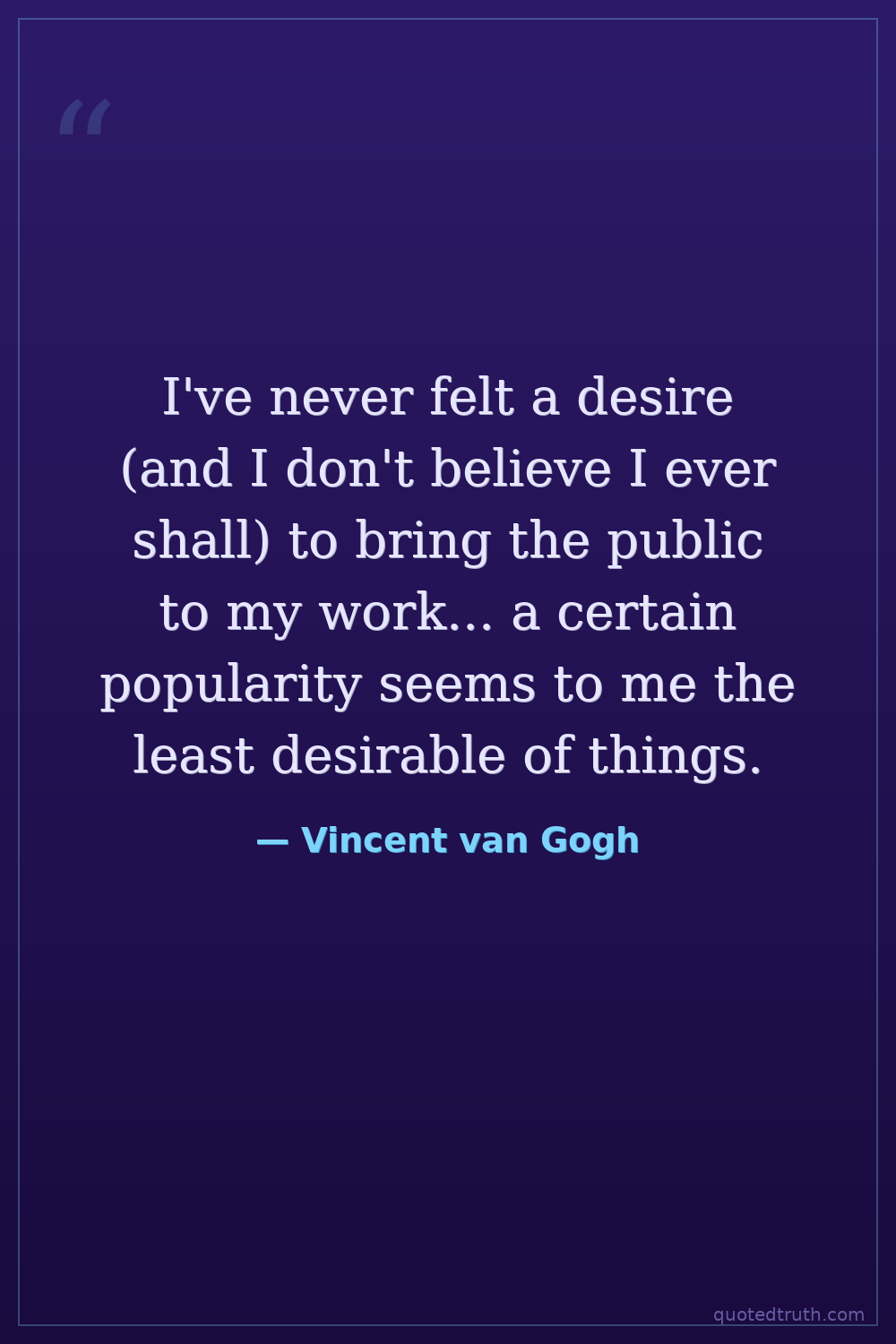 I've never felt a desire (and I don't believe I ever shall) to bring the public to my work... a certain popularity seems to me the least desirable of things.