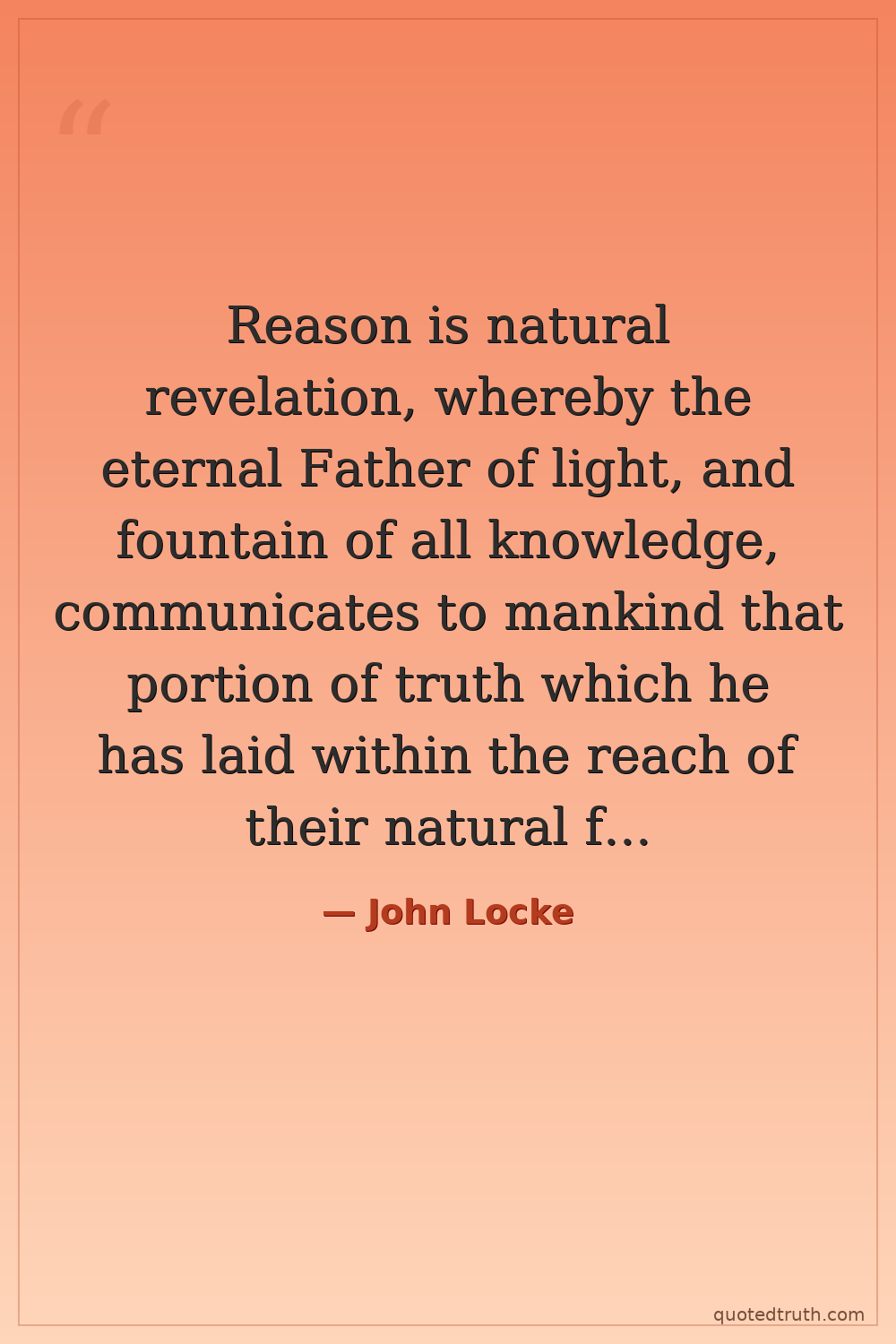 Reason is natural revelation, whereby the eternal Father of light, and fountain of all knowledge, communicates to mankind that portion of truth which he has laid within the reach of their natural faculties.