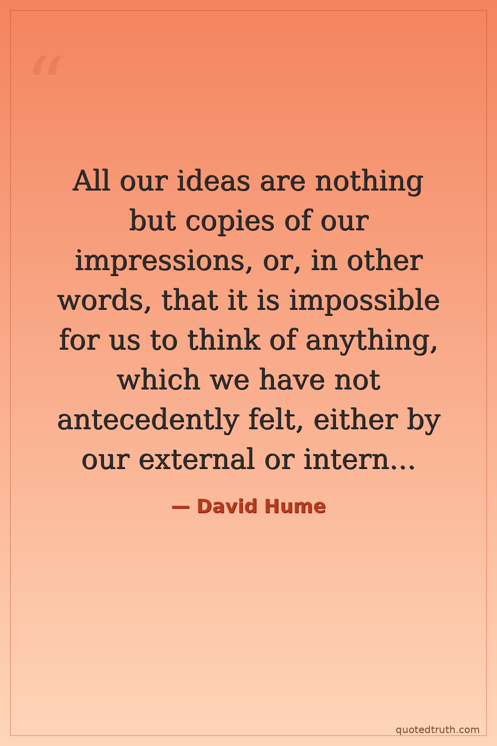 All our ideas are nothing but copies of our impressions, or, in other words, that it is impossible for us to think of anything, which we have not antecedently felt, either by our external or internal senses.