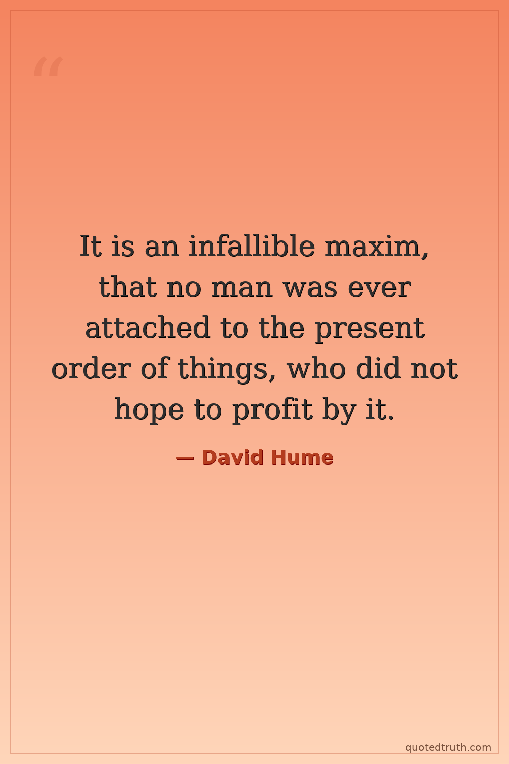 It is an infallible maxim, that no man was ever attached to the present order of things, who did not hope to profit by it.