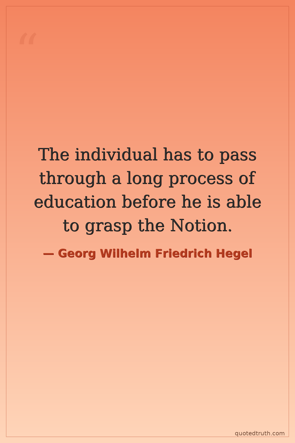 The individual has to pass through a long process of education before he is able to grasp the Notion.