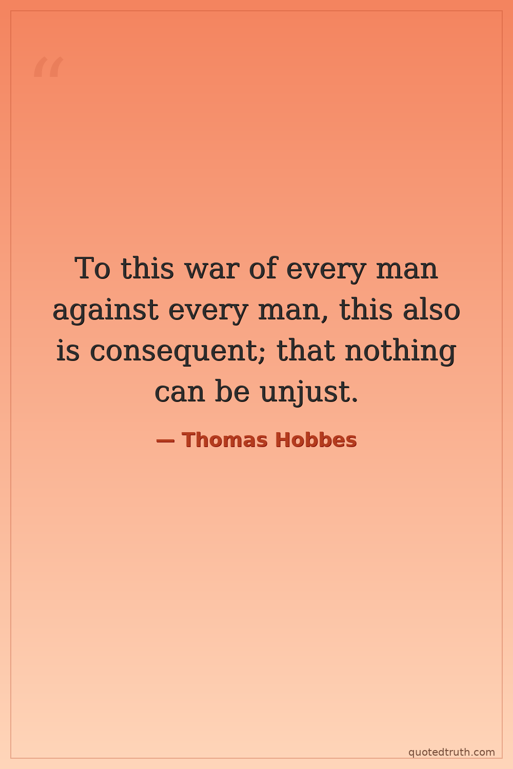 To this war of every man against every man, this also is consequent; that nothing can be unjust.