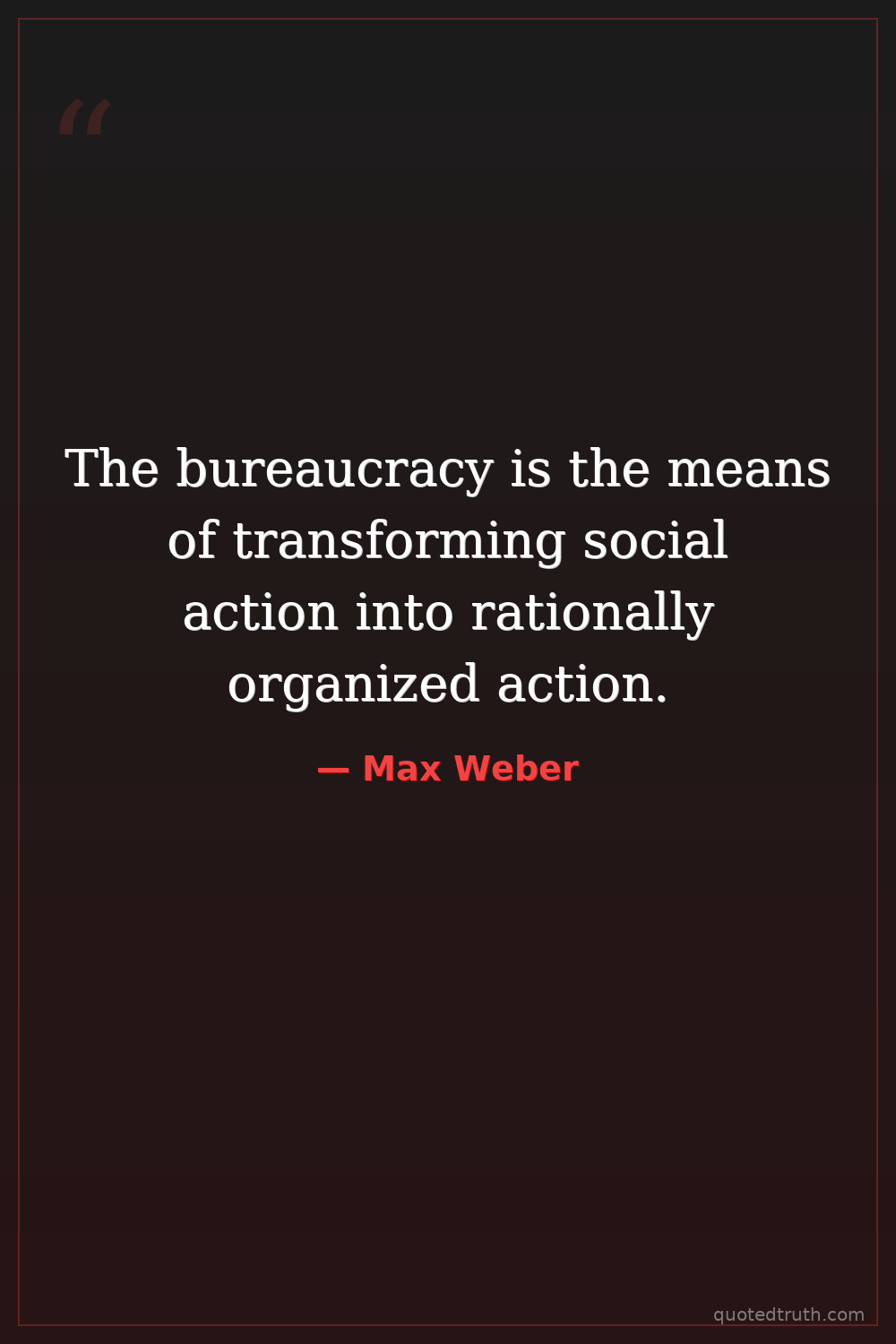 The bureaucracy is the means of transforming social action into rationally organized action.