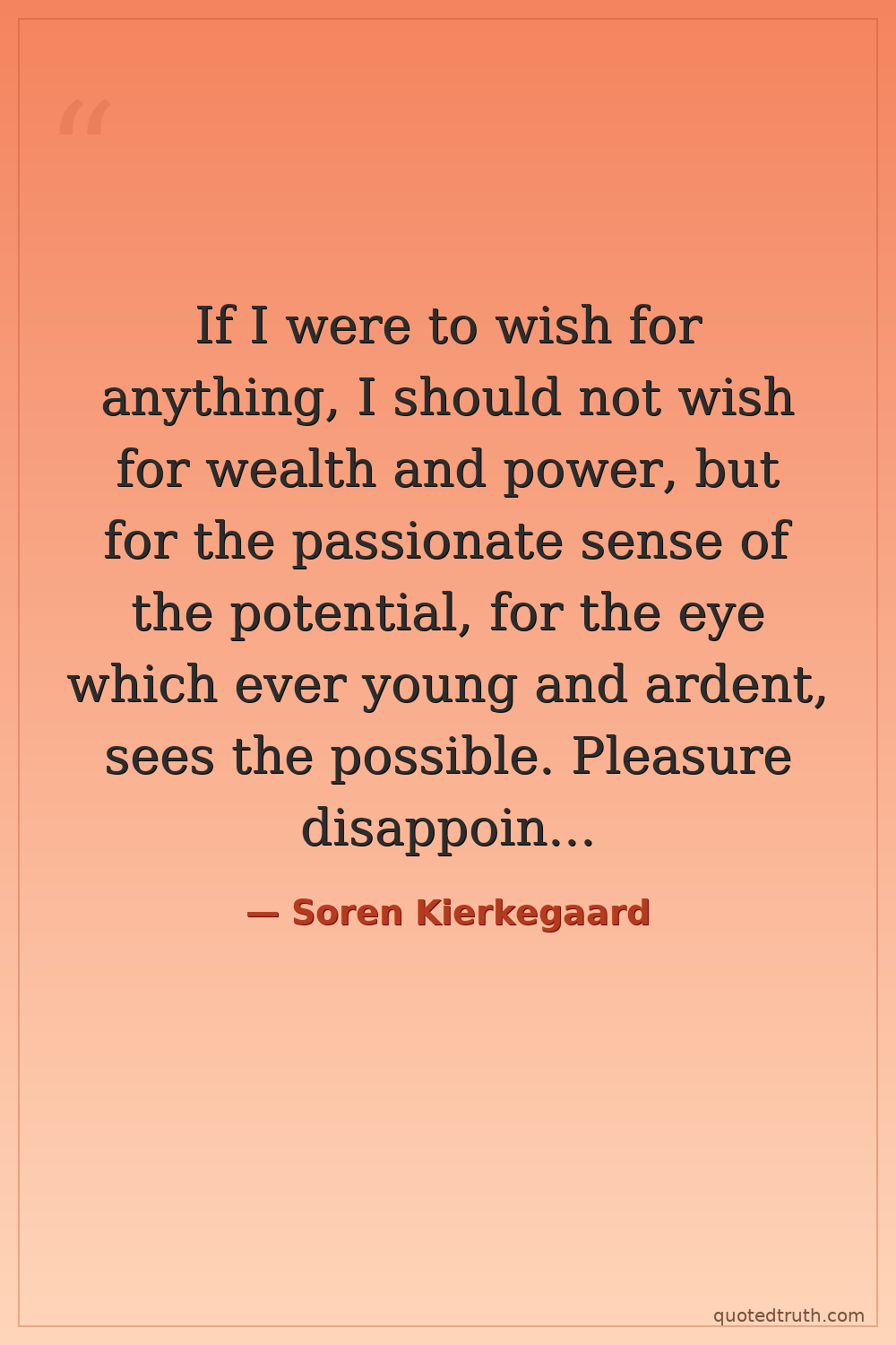 If I were to wish for anything, I should not wish for wealth and power, but for the passionate sense of the potential, for the eye which ever young and ardent, sees the possible. Pleasure disappoints, possibility never.