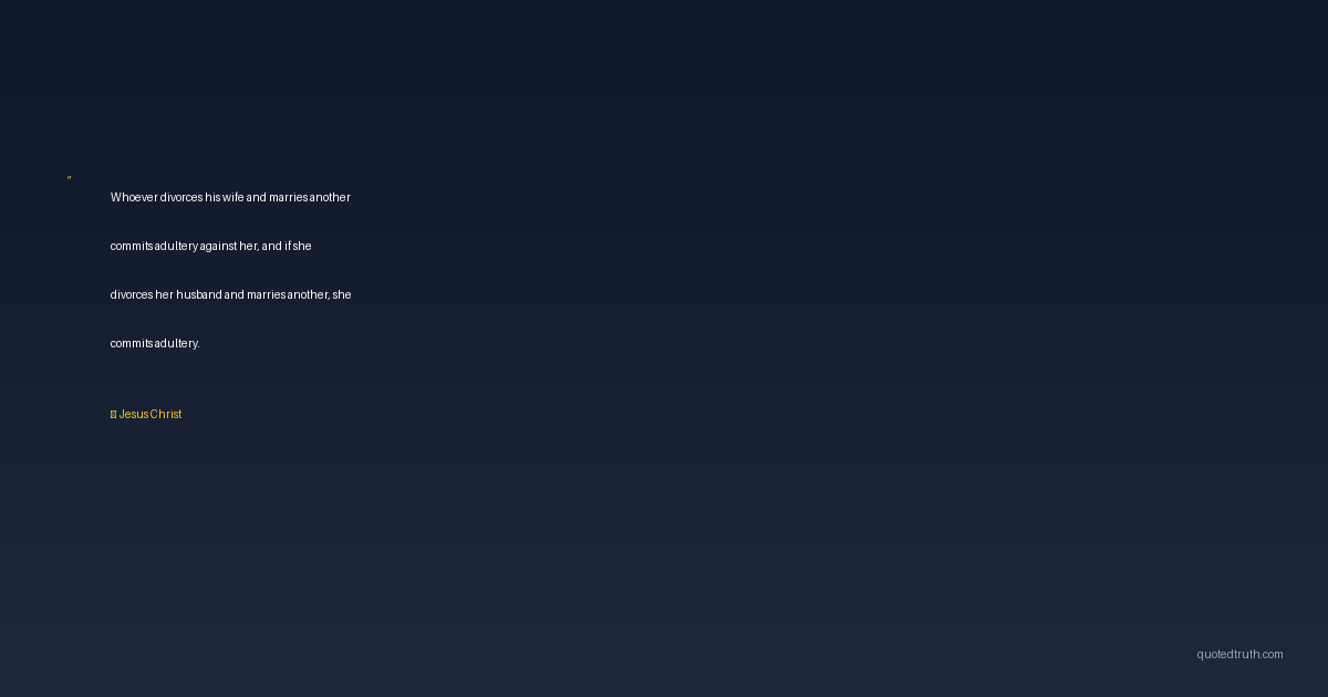 Whoever divorces his wife and marries another commits adultery against her, and if she divorces her husband and marries another, she commits adultery.