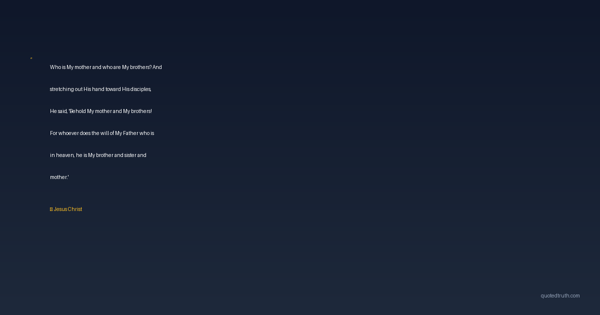 Who is My mother and who are My brothers? And stretching out His hand toward His disciples, He said, 'Behold My mother and My brothers! For whoever does the will of My Father who is in heaven, he is My brother and sister and mother.'