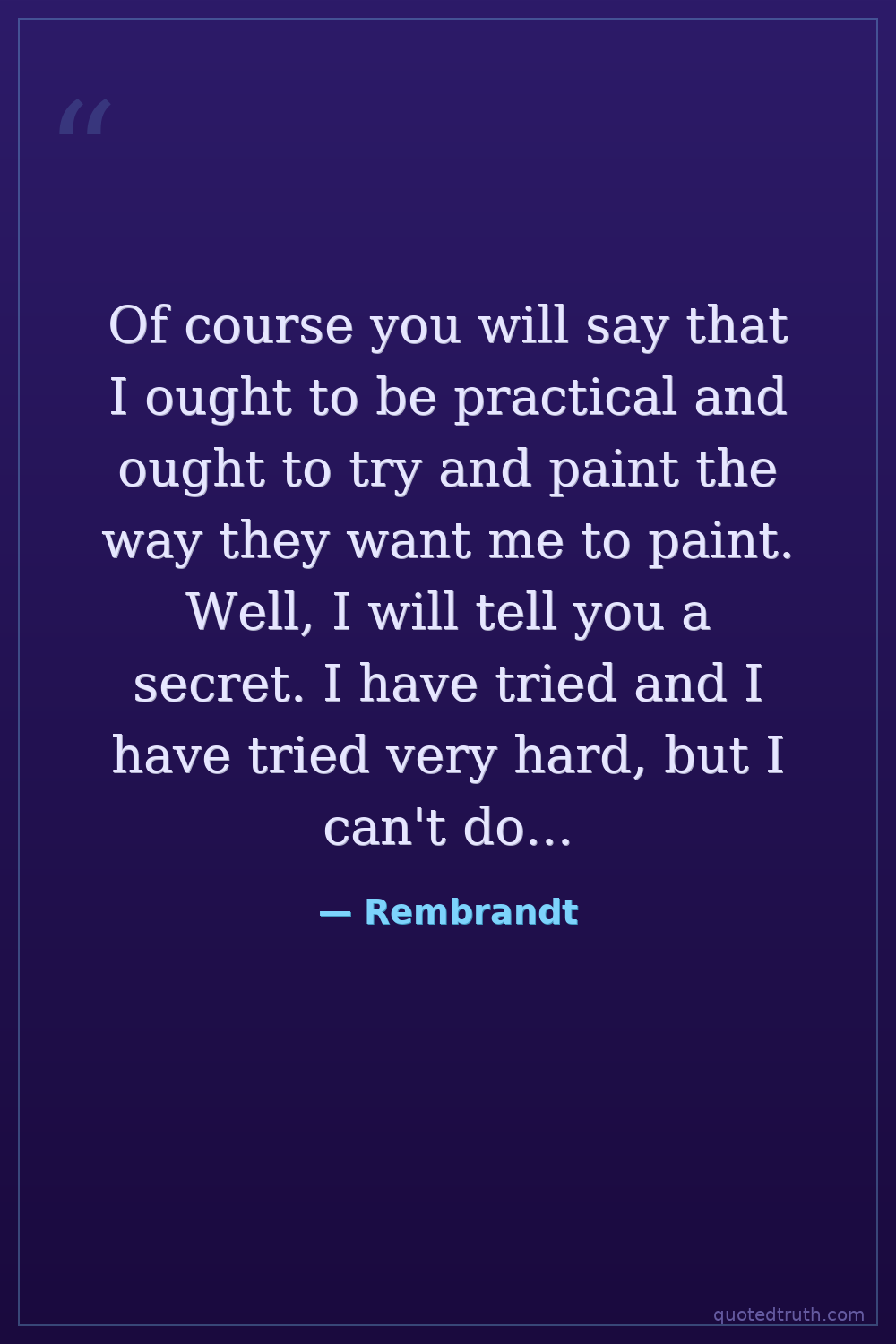 Of course you will say that I ought to be practical and ought to try and paint the way they want me to paint. Well, I will tell you a secret. I have tried and I have tried very hard, but I can't do it. I just can't do it! And that is why I am just a little crazy.
