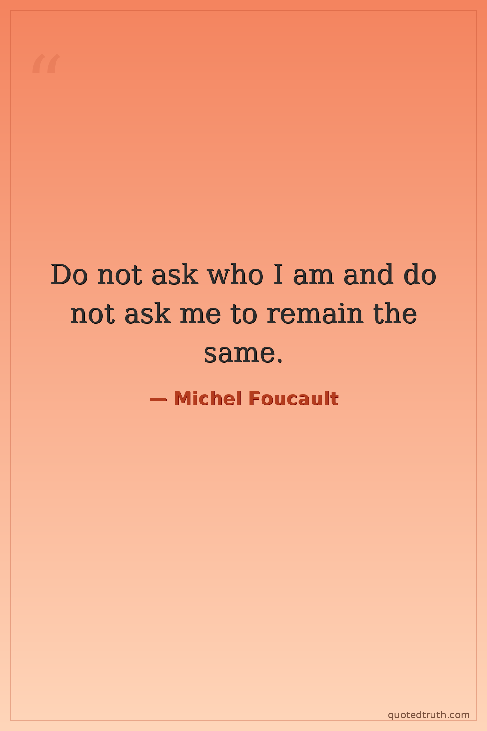 Do not ask who I am and do not ask me to remain the same.