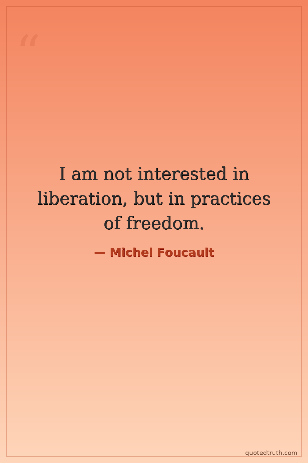 I am not interested in liberation, but in practices of freedom.