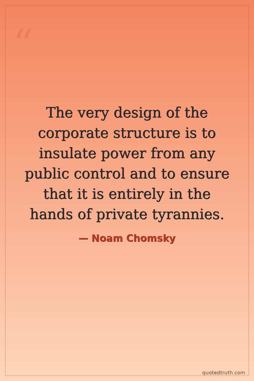 The very design of the corporate structure is to insulate power from any public control and to ensure that it is entirely in the hands of private tyrannies.