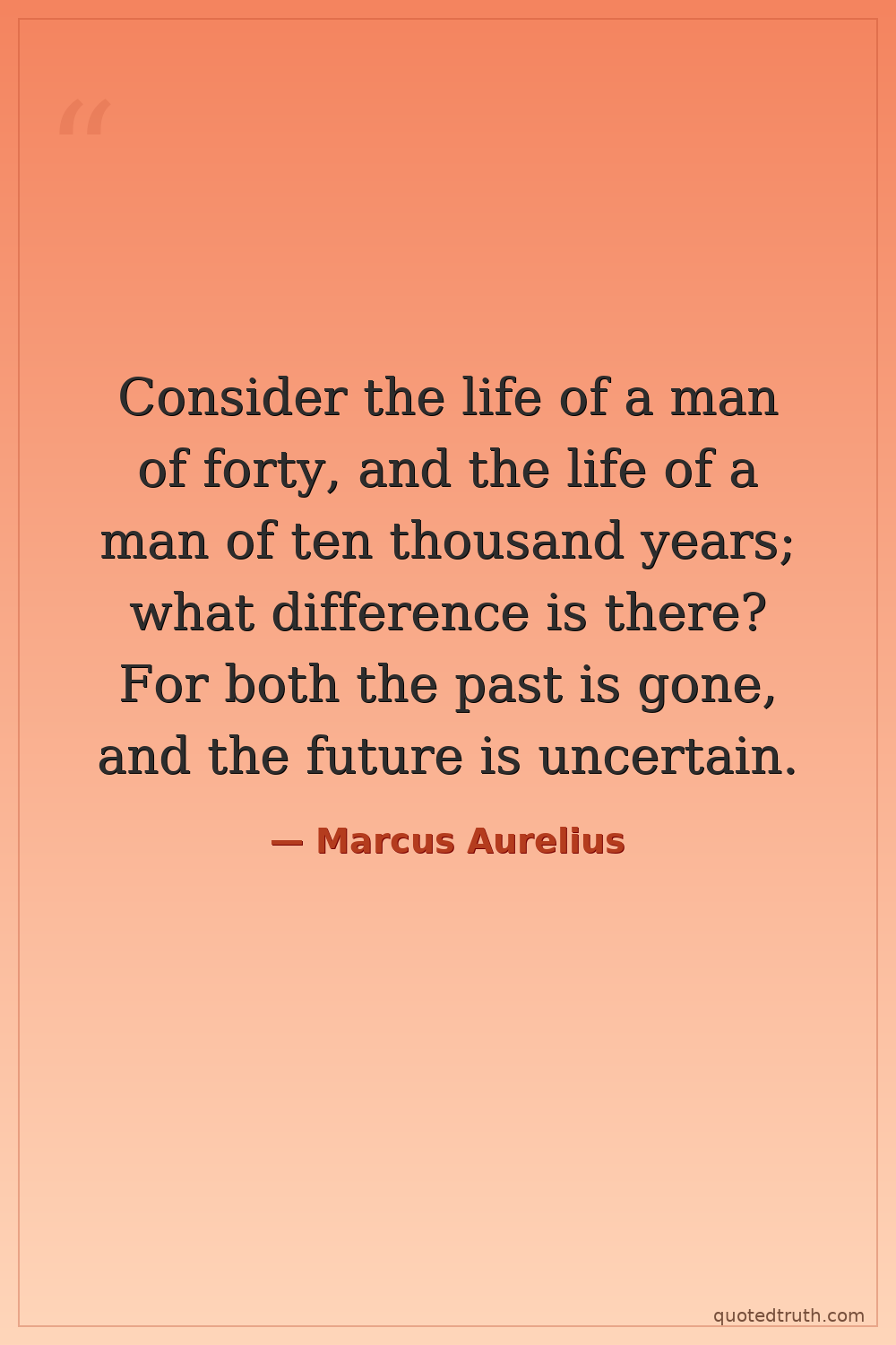 Consider the life of a man of forty, and the life of a man of ten thousand years; what difference is there? For both the past is gone, and the future is uncertain.