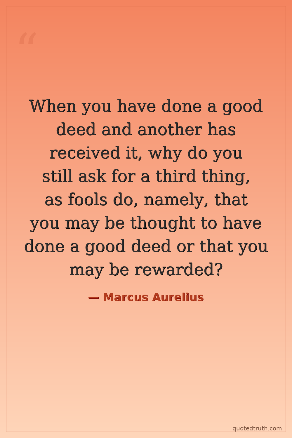 When you have done a good deed and another has received it, why do you still ask for a third thing, as fools do, namely, that you may be thought to have done a good deed or that you may be rewarded?