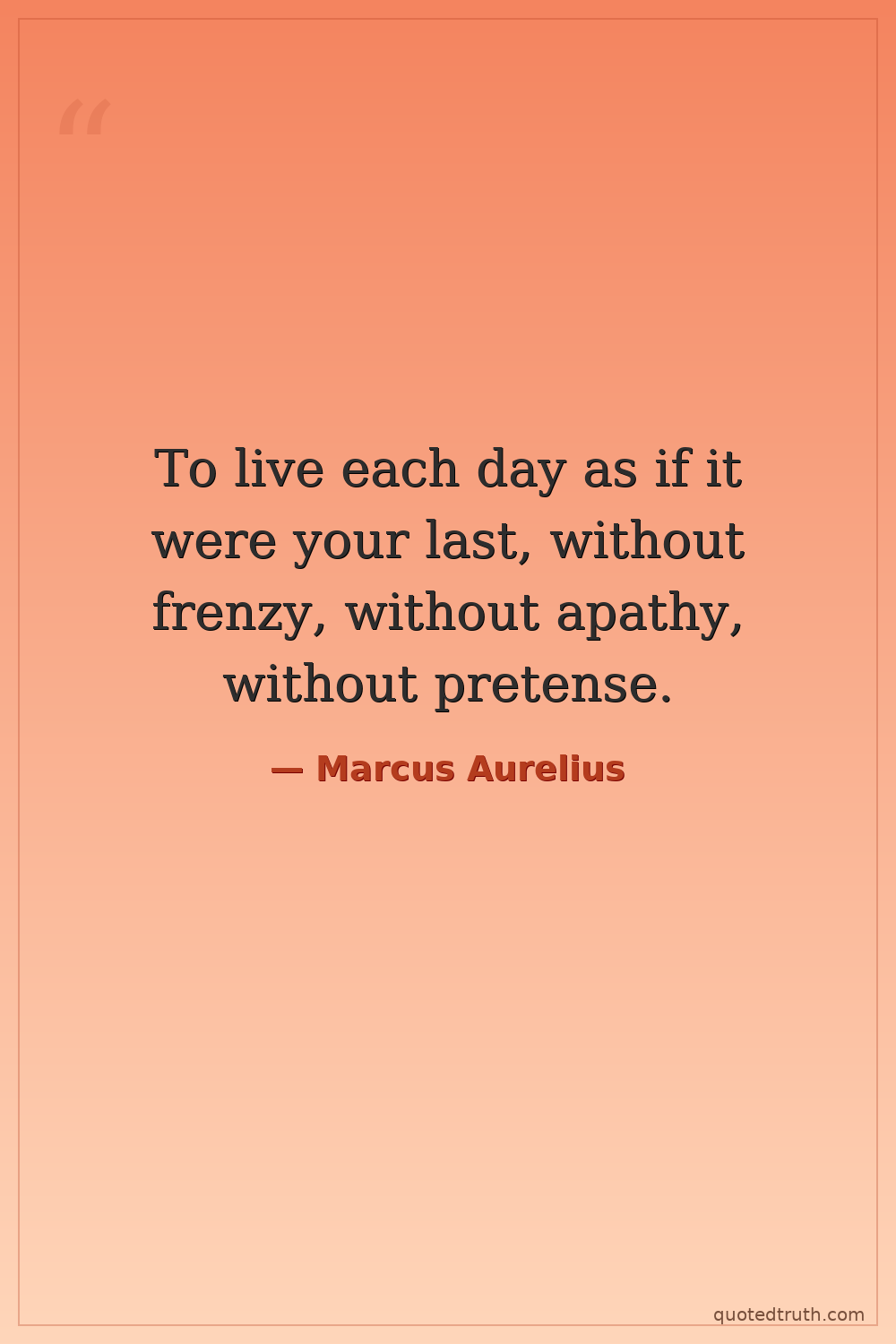 To live each day as if it were your last, without frenzy, without apathy, without pretense.