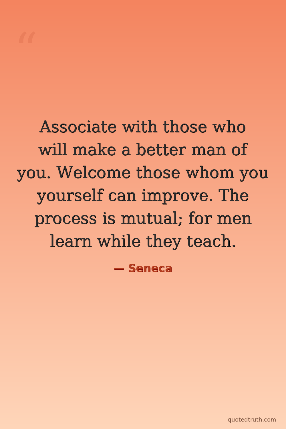 Associate with those who will make a better man of you. Welcome those whom you yourself can improve. The process is mutual; for men learn while they teach.