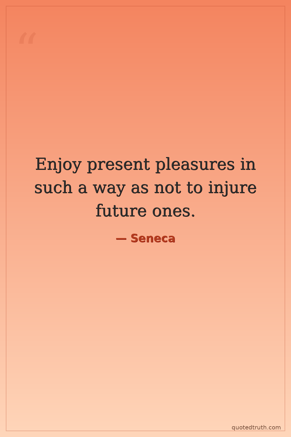 Enjoy present pleasures in such a way as not to injure future ones.