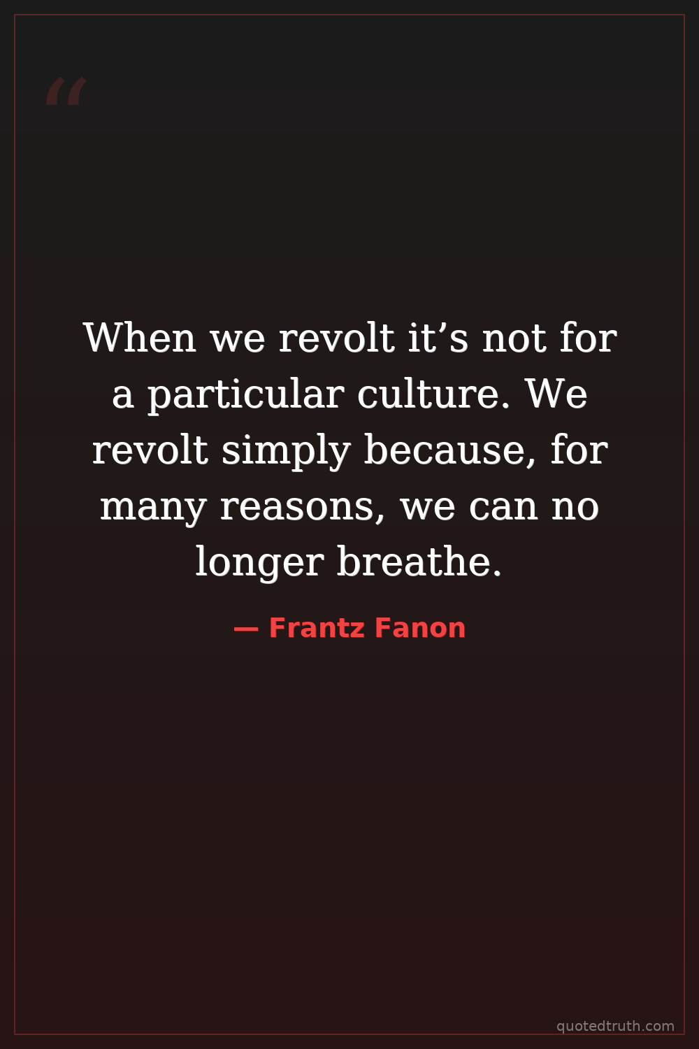 When we revolt it’s not for a particular culture. We revolt simply because, for many reasons, we can no longer breathe.