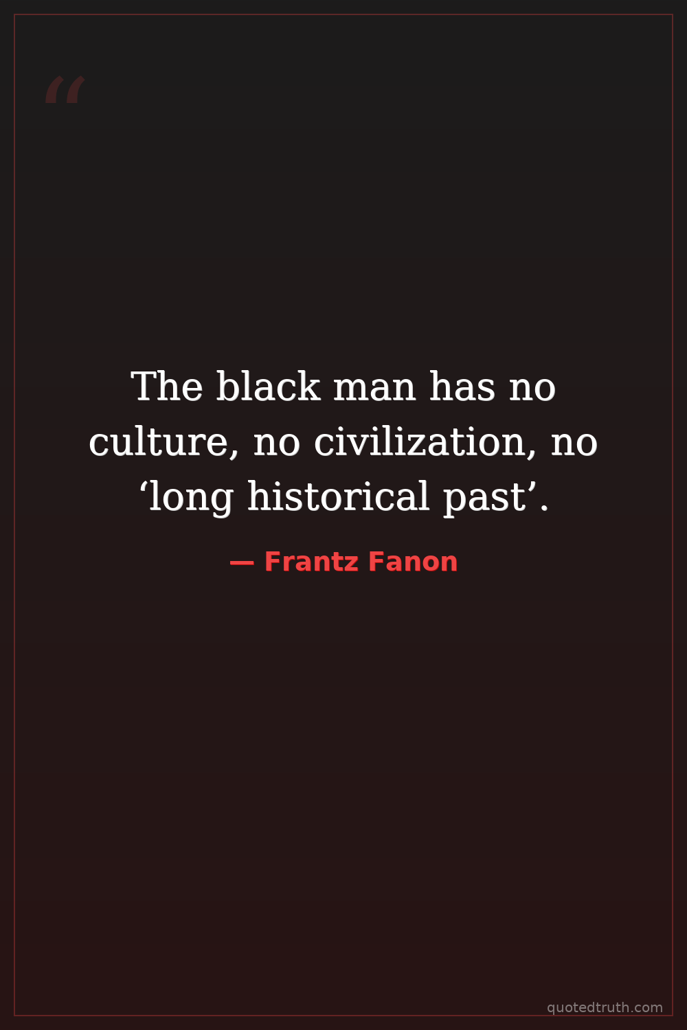 Controversial"The colonist, who is out to destroy the colonized people, will naturally find himself facing a hostile people, and this hostility will be shown by every means available. It will be the negation of the…"
