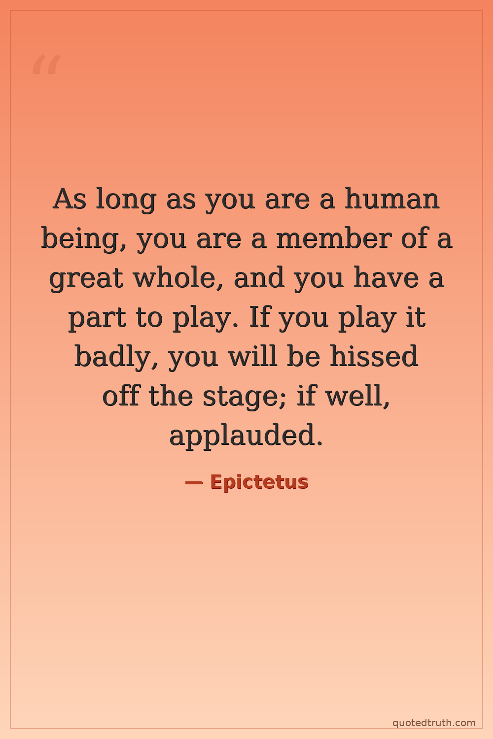 As long as you are a human being, you are a member of a great whole, and you have a part to play. If you play it badly, you will be hissed off the stage; if well, applauded.