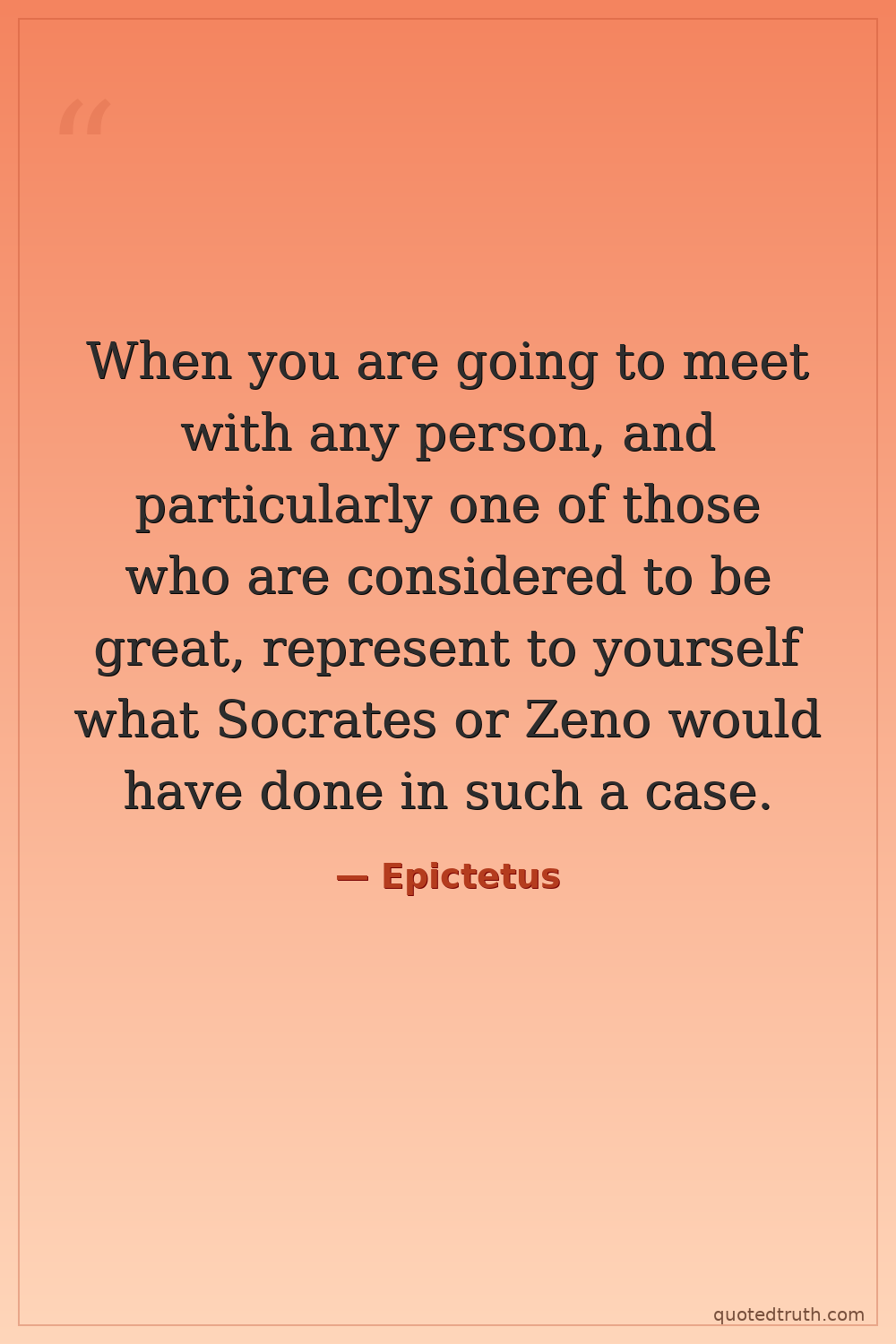 When you are going to meet with any person, and particularly one of those who are considered to be great, represent to yourself what Socrates or Zeno would have done in such a case.