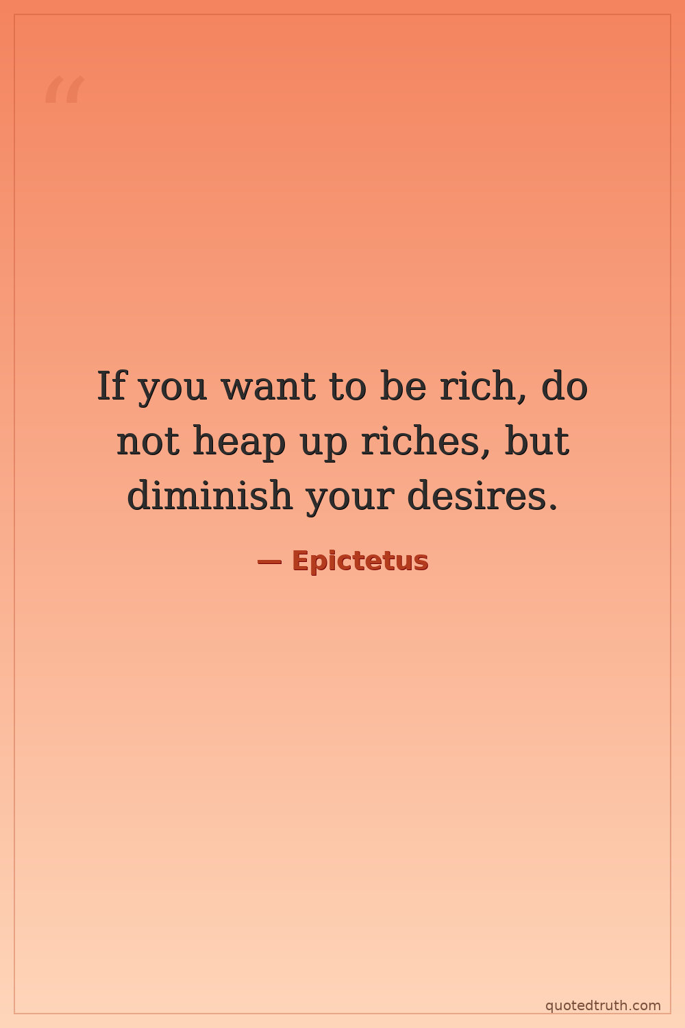 If you want to be rich, do not heap up riches, but diminish your desires.