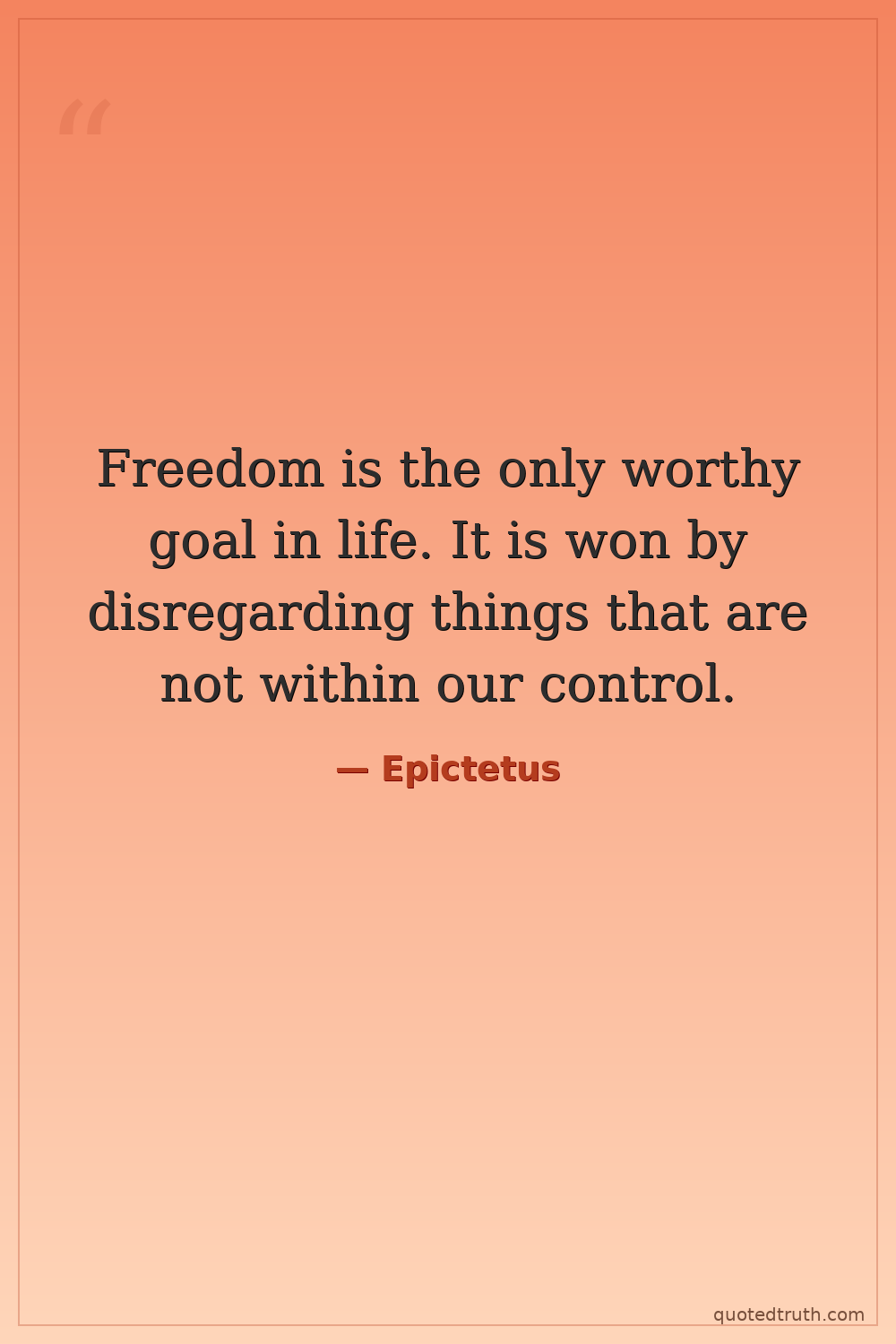 Freedom is the only worthy goal in life. It is won by disregarding things that are not within our control.