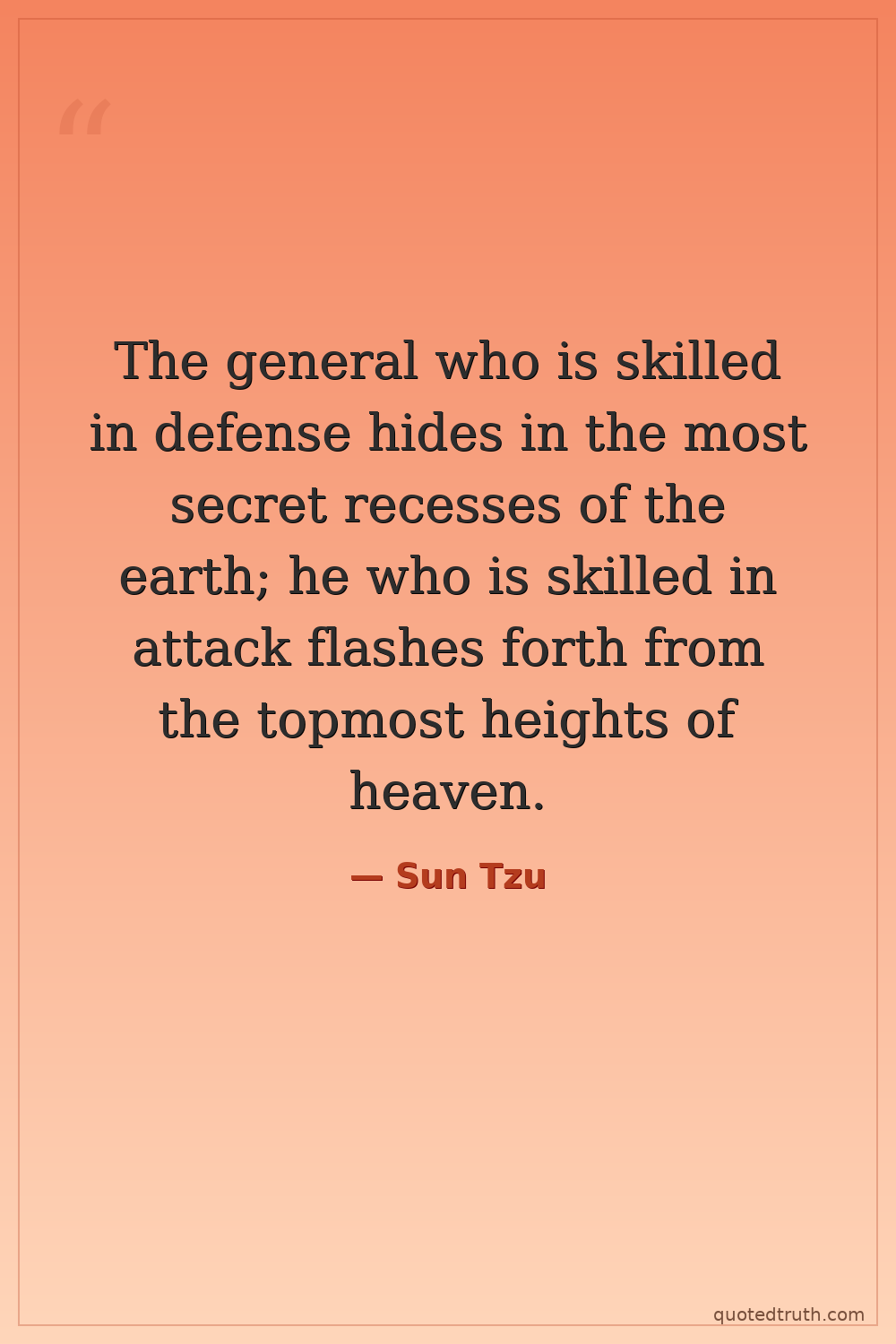 The general who is skilled in defense hides in the most secret recesses of the earth; he who is skilled in attack flashes forth from the topmost heights of heaven.