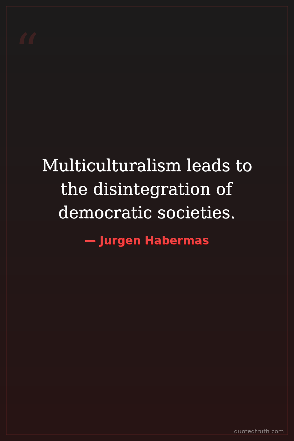 Multiculturalism leads to the disintegration of democratic societies.