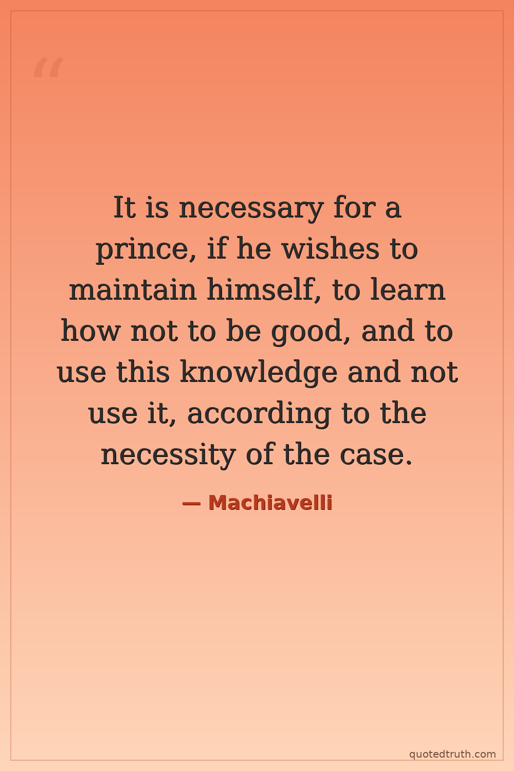It is necessary for a prince, if he wishes to maintain himself, to learn how not to be good, and to use this knowledge and not use it, according to the necessity of the case.