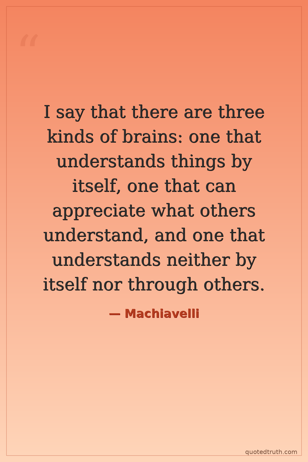 I say that there are three kinds of brains: one that understands things by itself, one that can appreciate what others understand, and one that understands neither by itself nor through others.