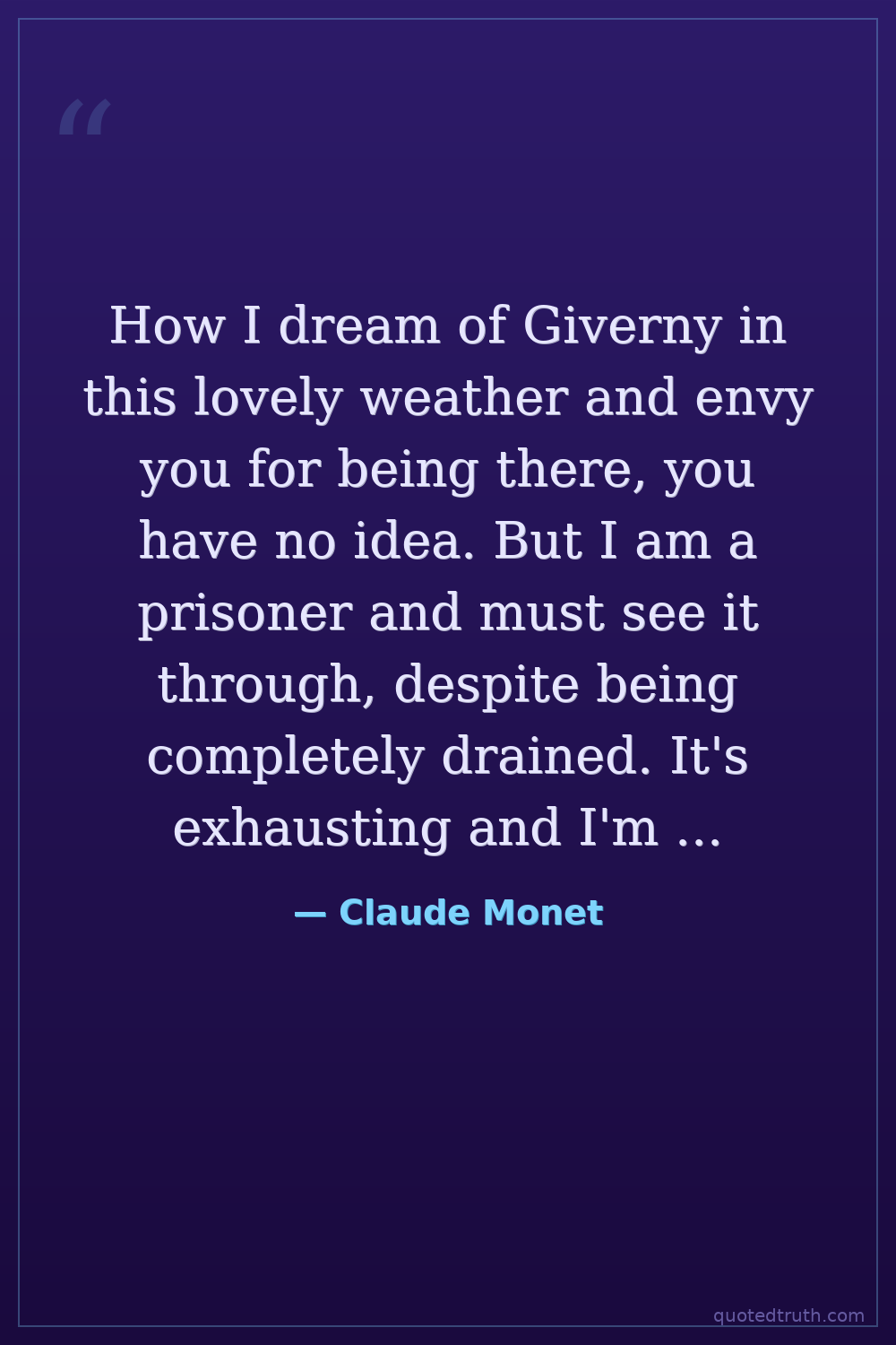 How I dream of Giverny in this lovely weather and envy you for being there, you have no idea. But I am a prisoner and must see it through, despite being completely drained. It's exhausting and I'm working with feverish ardour.