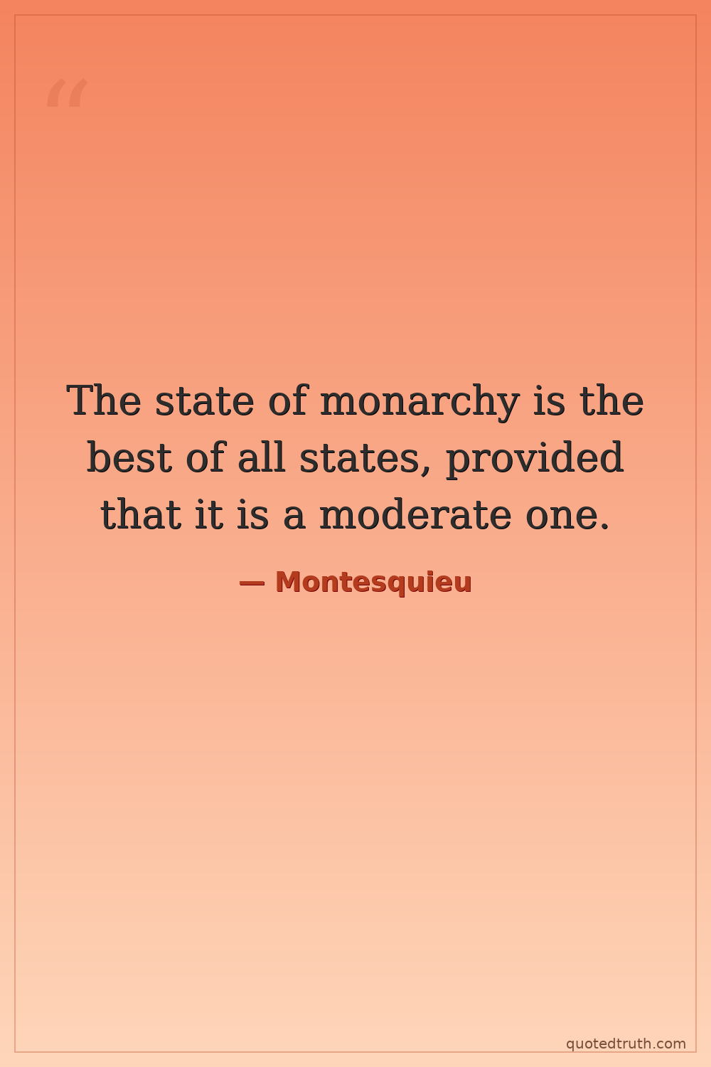 The state of monarchy is the best of all states, provided that it is a moderate one.