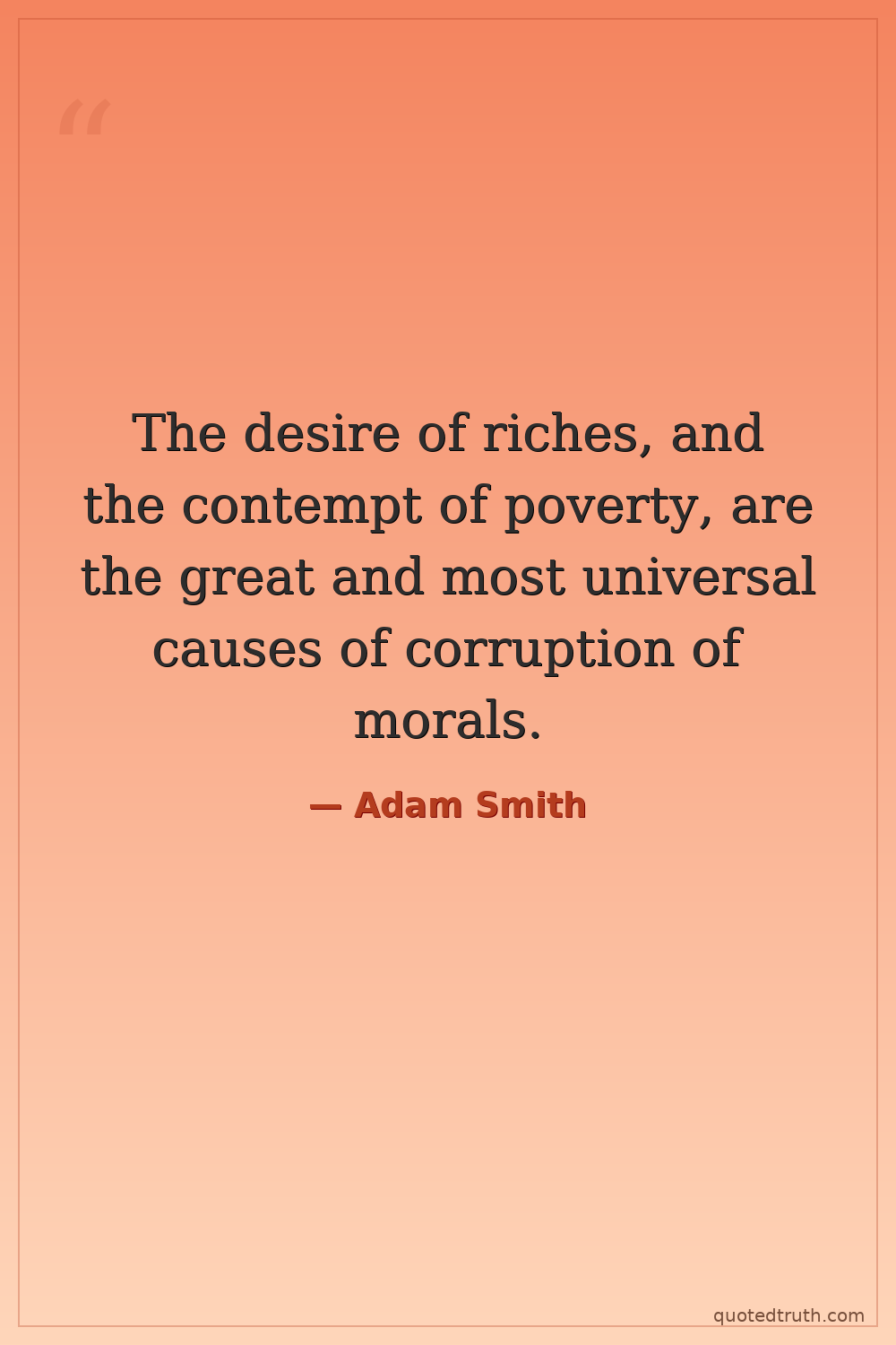 The desire of riches, and the contempt of poverty, are the great and most universal causes of corruption of morals.