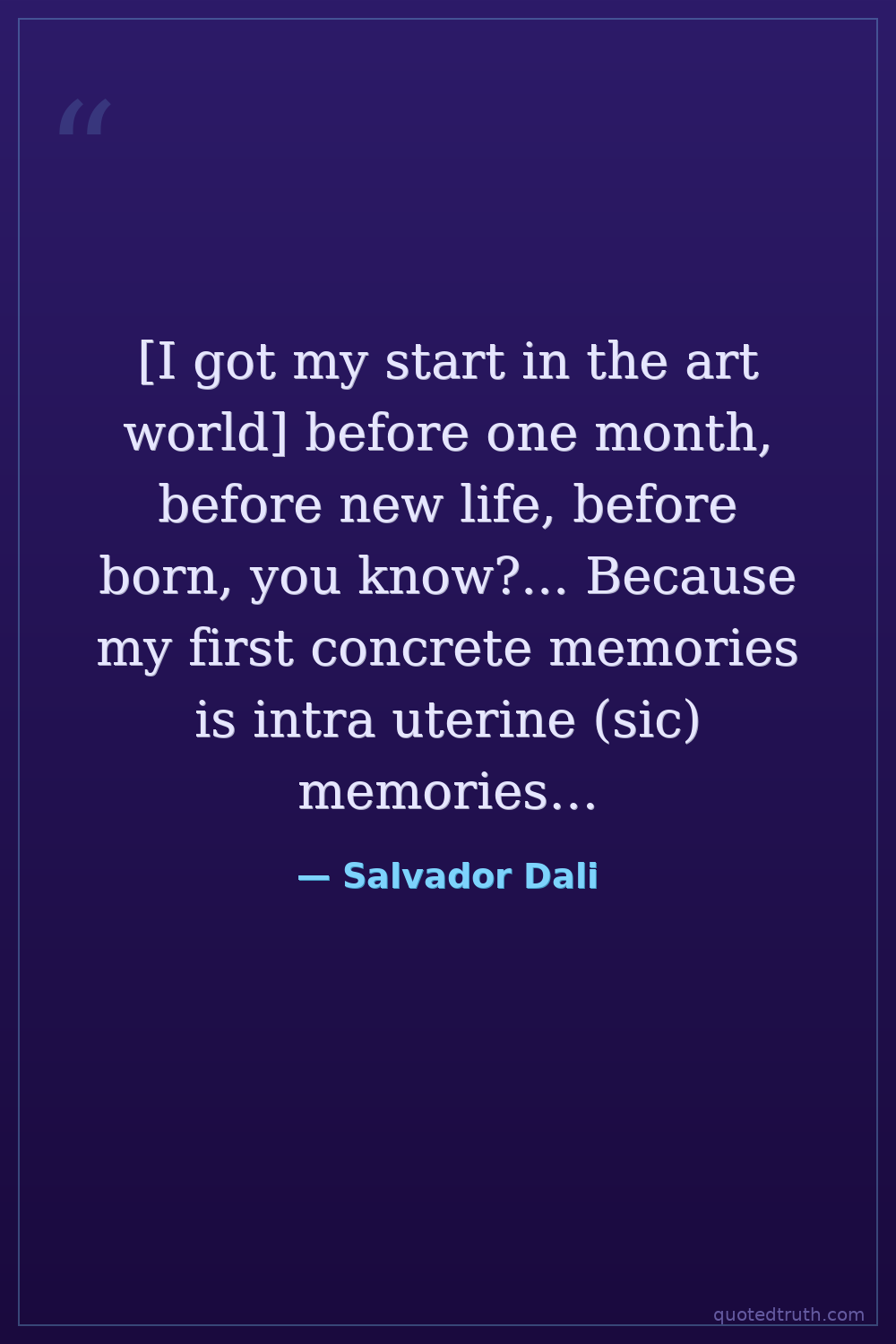 [I got my start in the art world] before one month, before new life, before born, you know?... Because my first concrete memories is intra uterine (sic) memories…