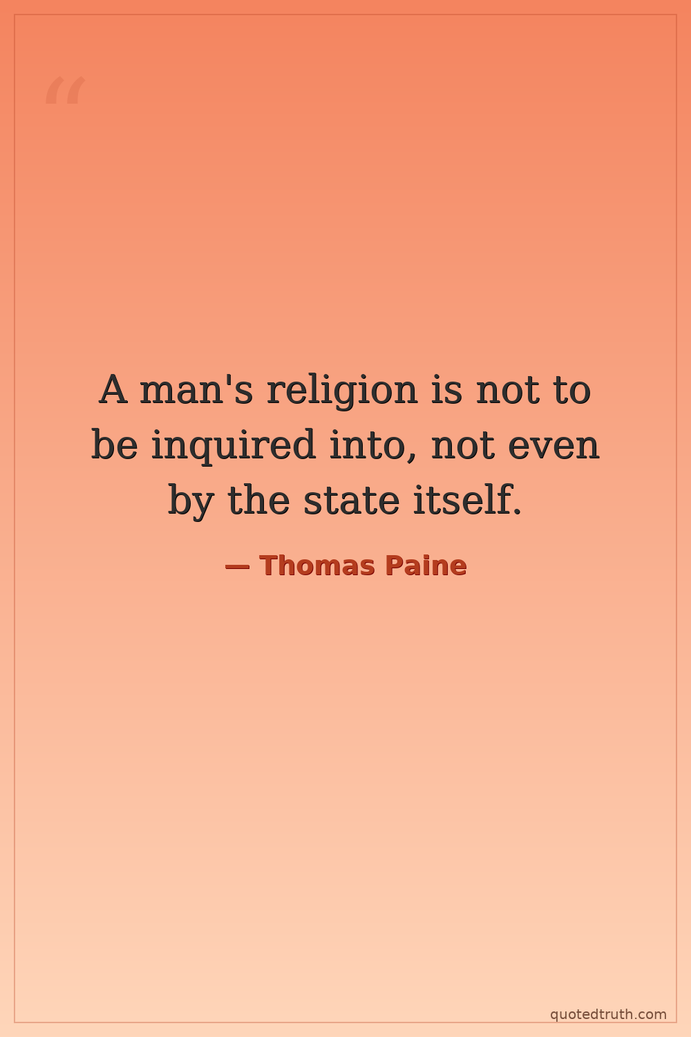 A man's religion is not to be inquired into, not even by the state itself.