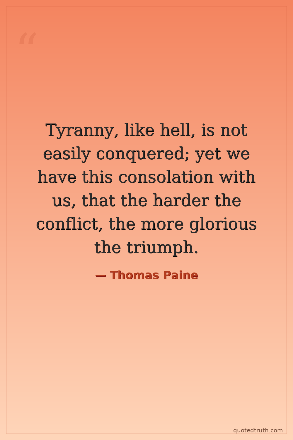 Tyranny, like hell, is not easily conquered; yet we have this consolation with us, that the harder the conflict, the more glorious the triumph.