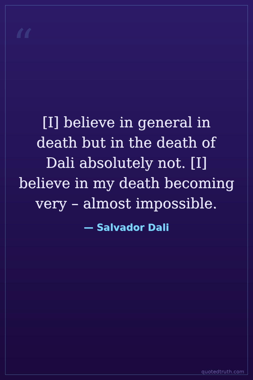 [I] believe in general in death but in the death of Dali absolutely not. [I] believe in my death becoming very – almost impossible.