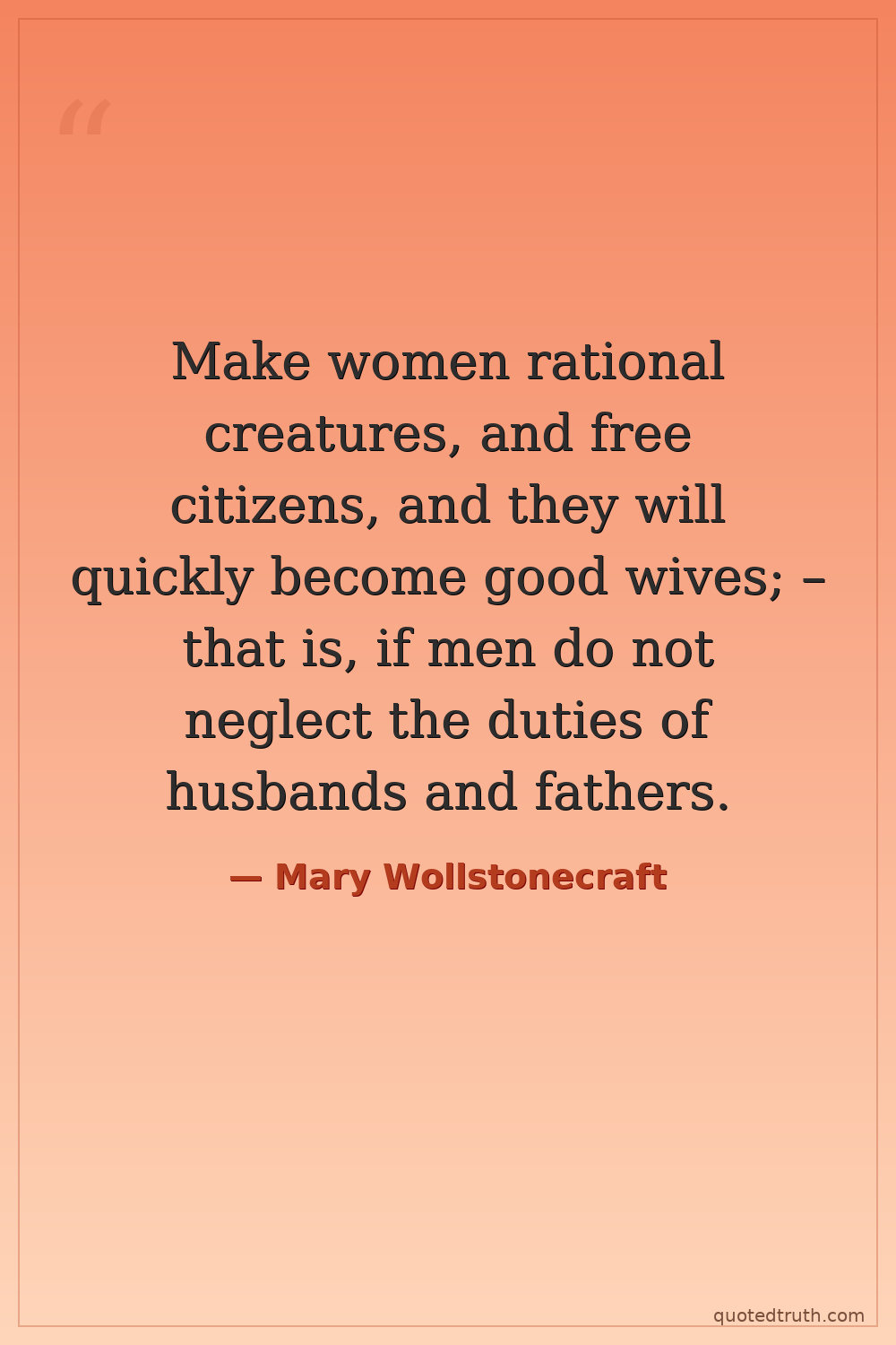 Make women rational creatures, and free citizens, and they will quickly become good wives; – that is, if men do not neglect the duties of husbands and fathers.