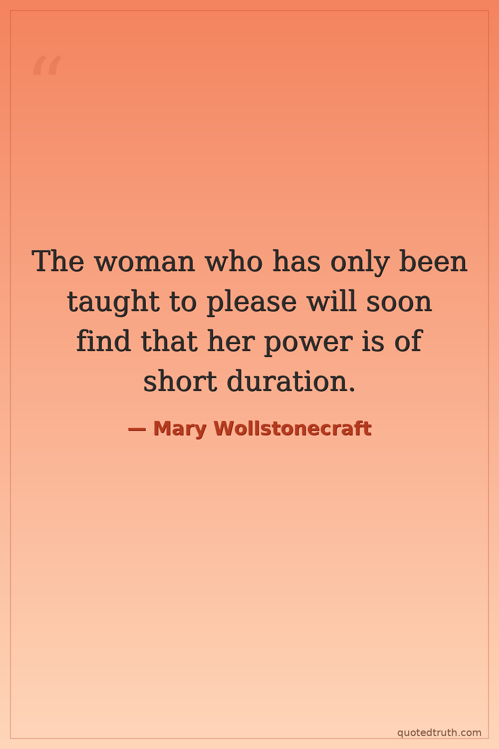 The woman who has only been taught to please will soon find that her power is of short duration.