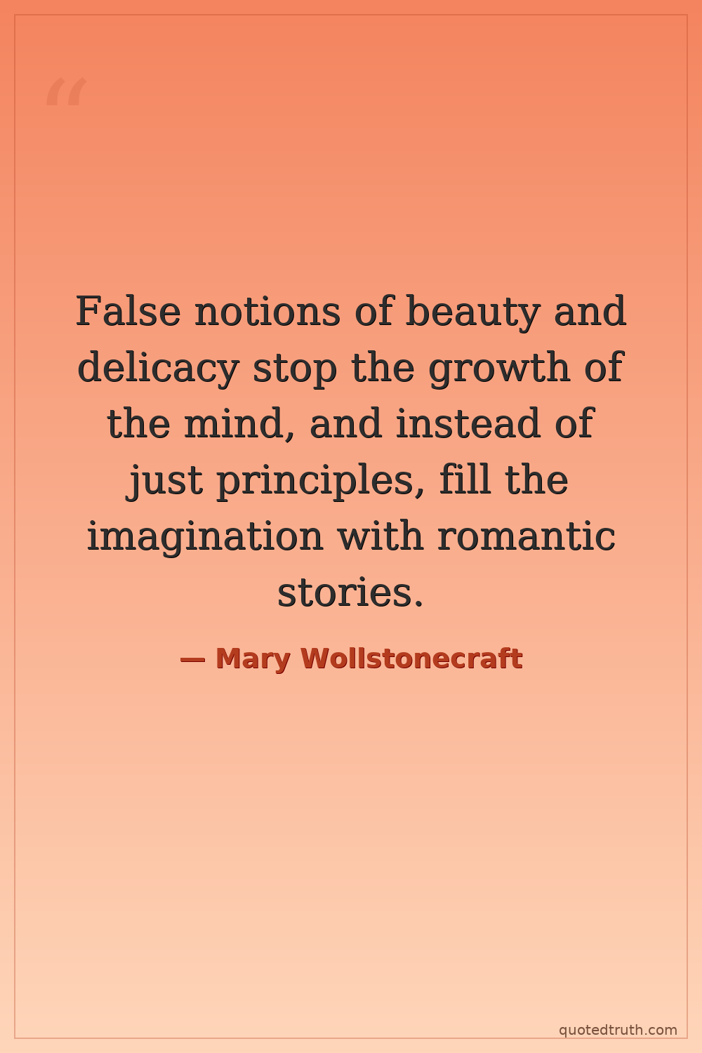 False notions of beauty and delicacy stop the growth of the mind, and instead of just principles, fill the imagination with romantic stories.