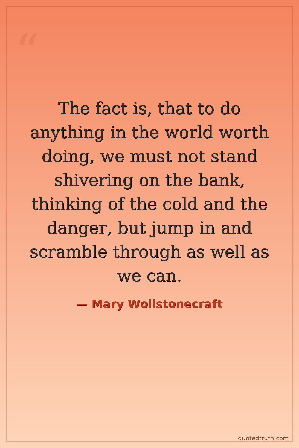 The fact is, that to do anything in the world worth doing, we must not stand shivering on the bank, thinking of the cold and the danger, but jump in and scramble through as well as we can.