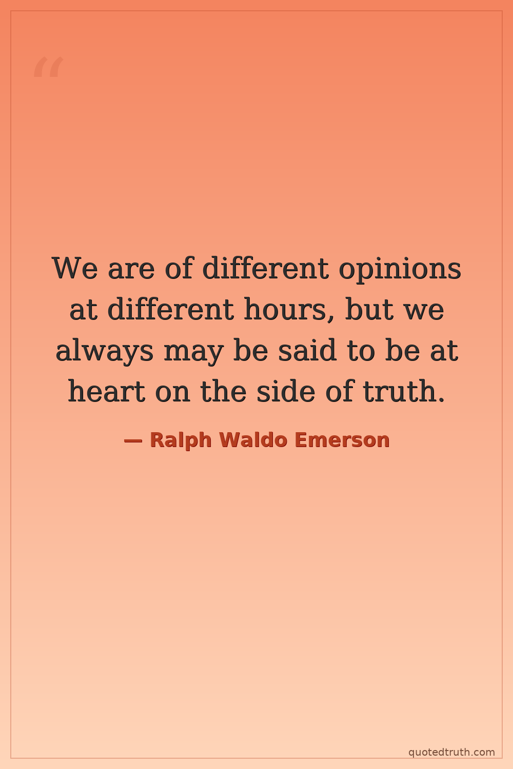 We are of different opinions at different hours, but we always may be said to be at heart on the side of truth.
