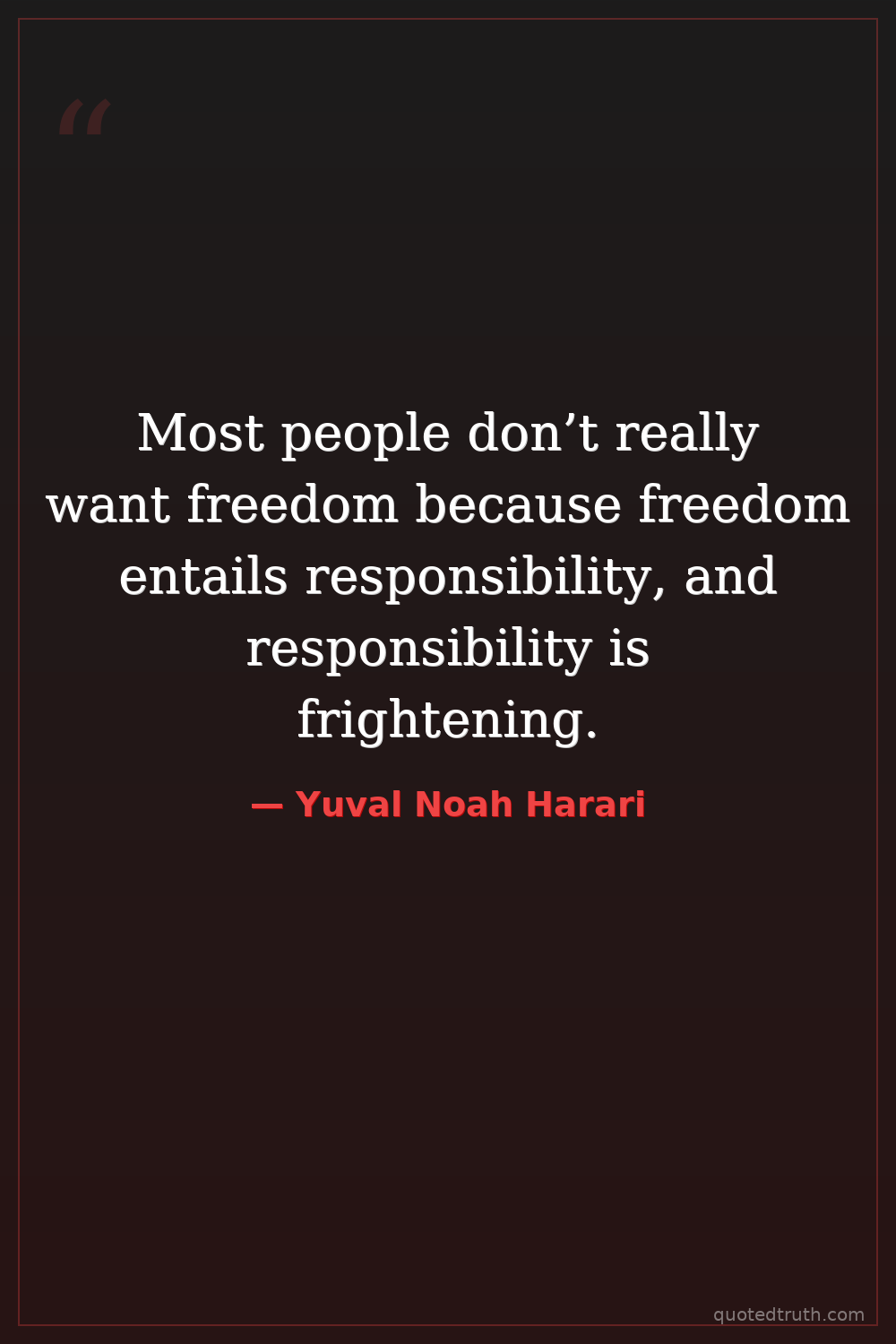 Most people don’t really want freedom because freedom entails responsibility, and responsibility is frightening.