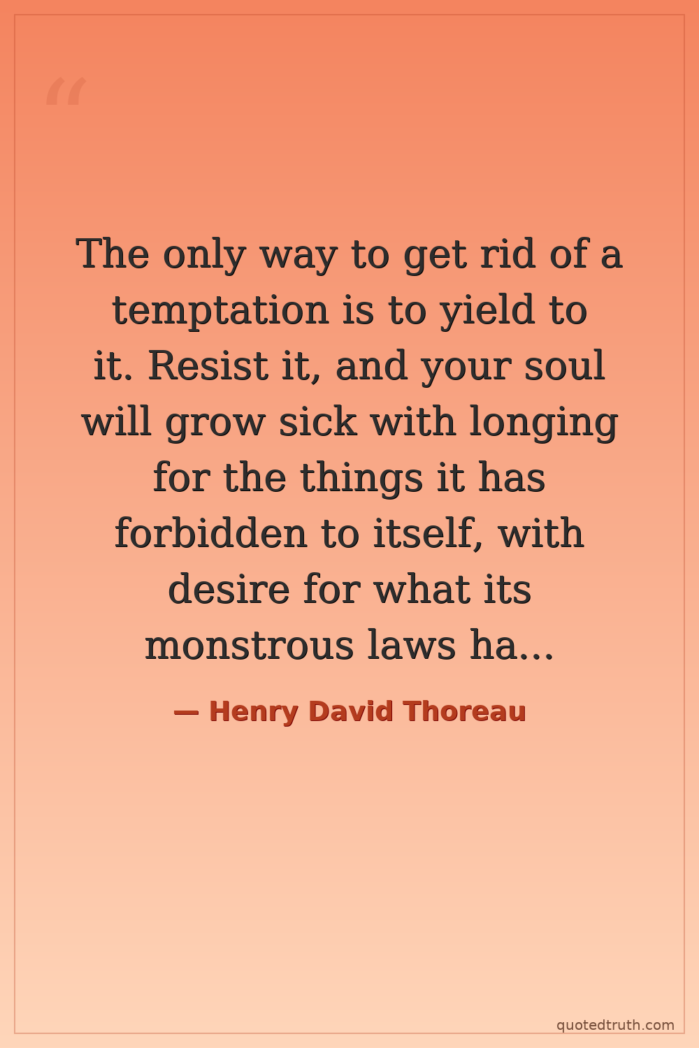 The only way to get rid of a temptation is to yield to it. Resist it, and your soul will grow sick with longing for the things it has forbidden to itself, with desire for what its monstrous laws have made monstrous and unlawful.