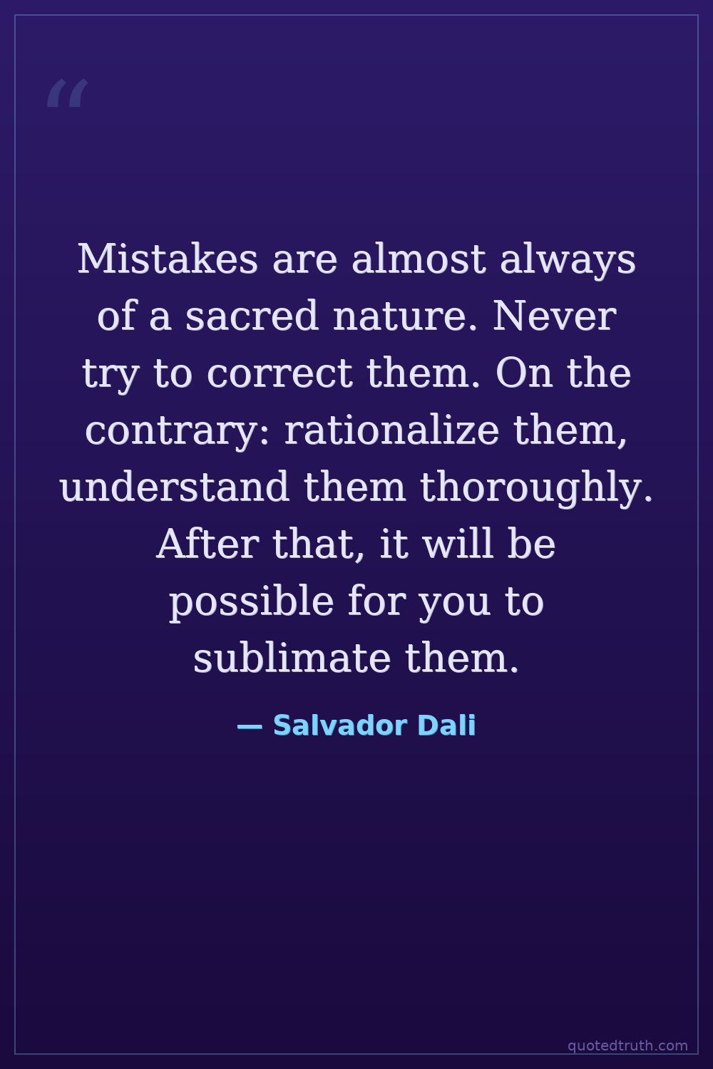 Mistakes are almost always of a sacred nature. Never try to correct them. On the contrary: rationalize them, understand them thoroughly. After that, it will be possible for you to sublimate them.