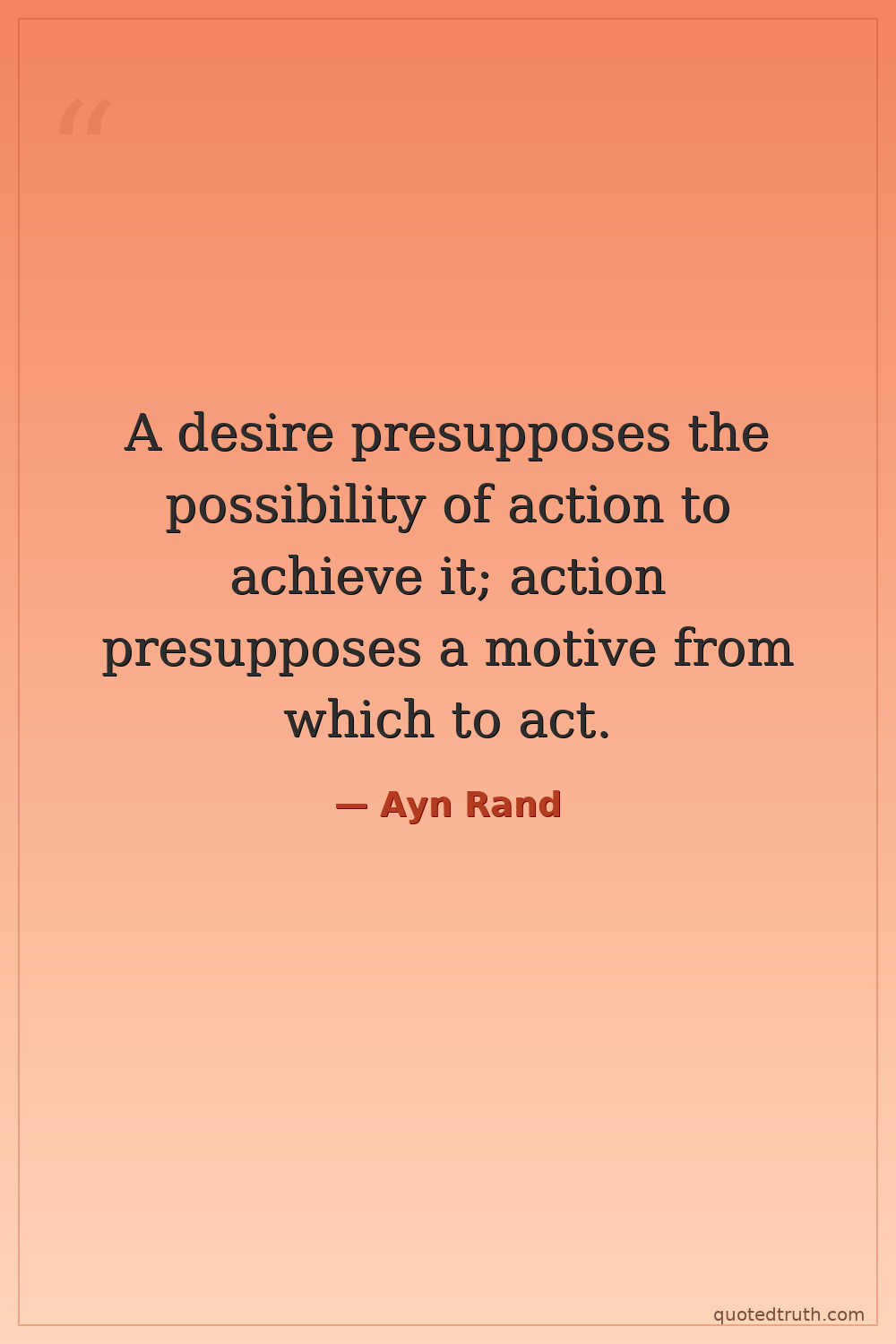 A desire presupposes the possibility of action to achieve it; action presupposes a motive from which to act.