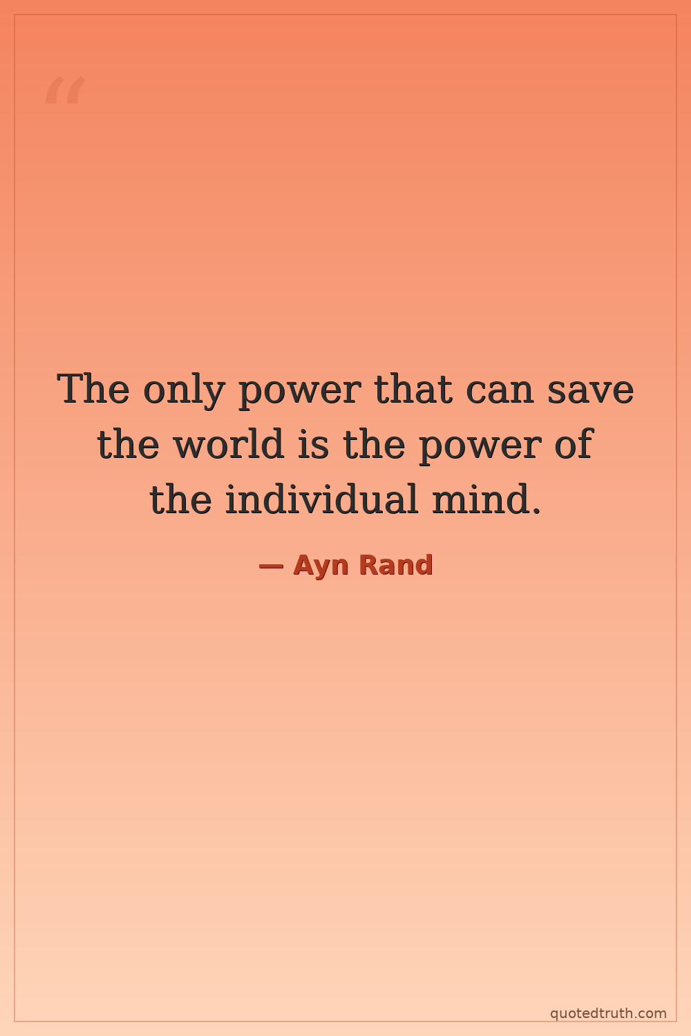 The only power that can save the world is the power of the individual mind.