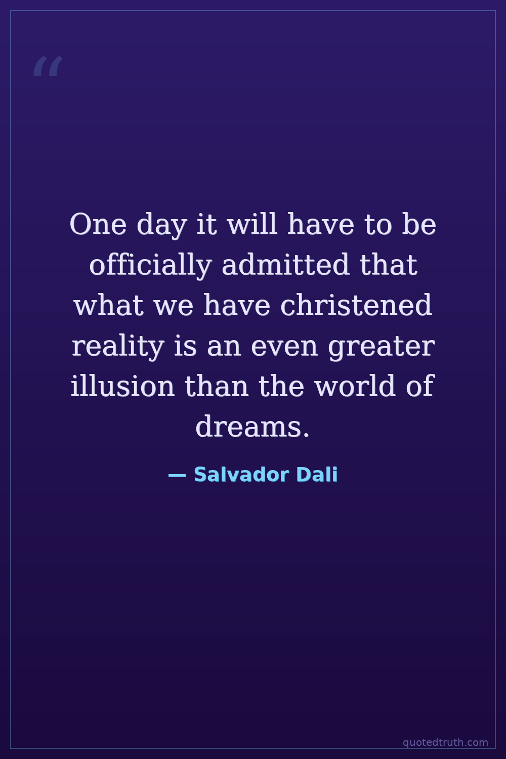 One day it will have to be officially admitted that what we have christened reality is an even greater illusion than the world of dreams.